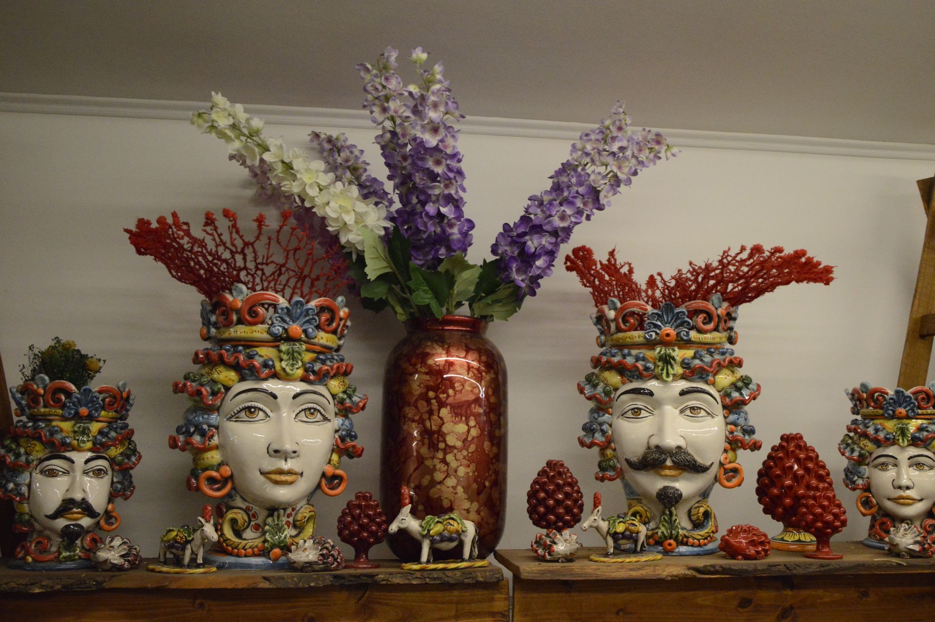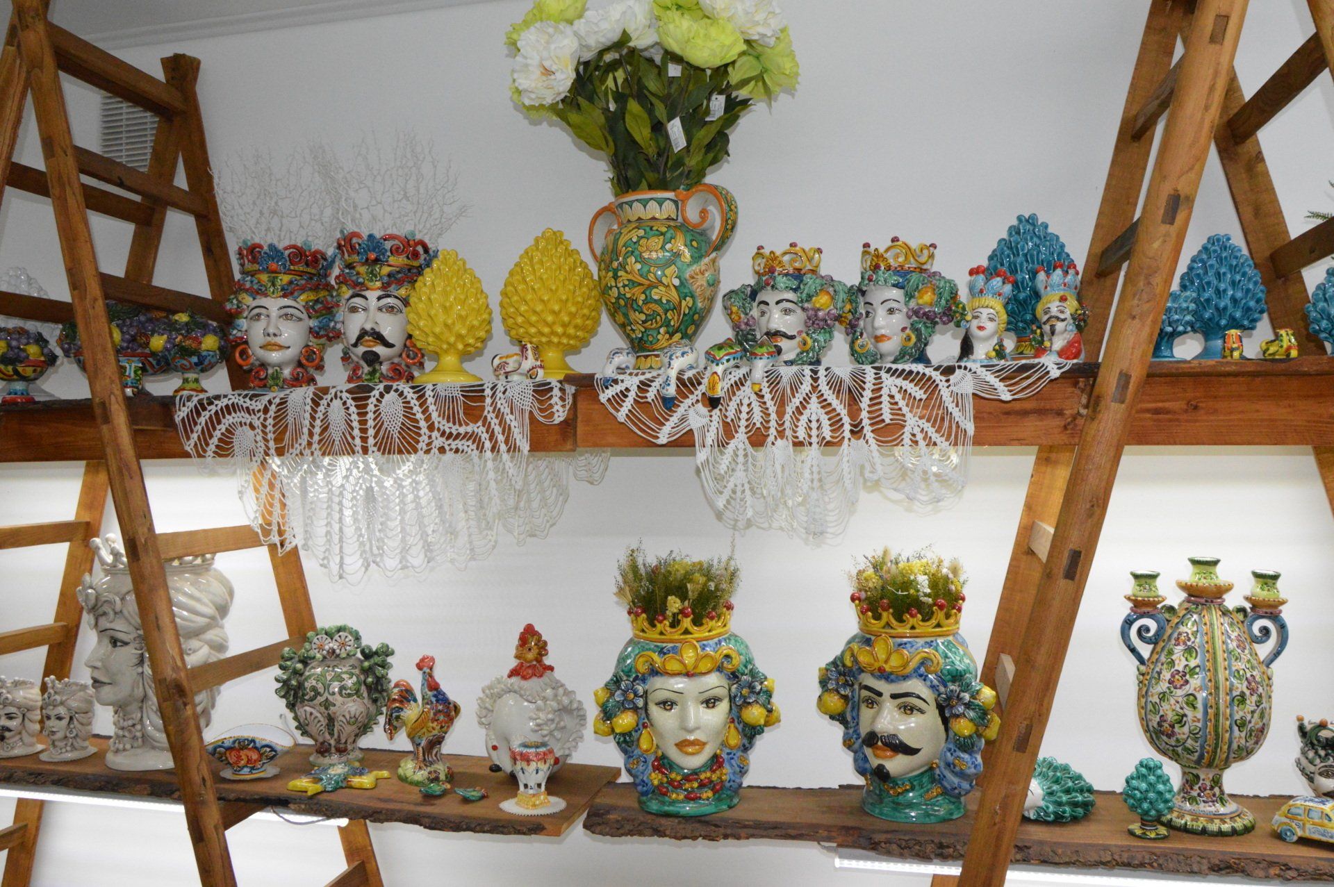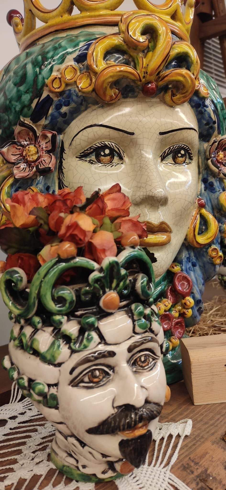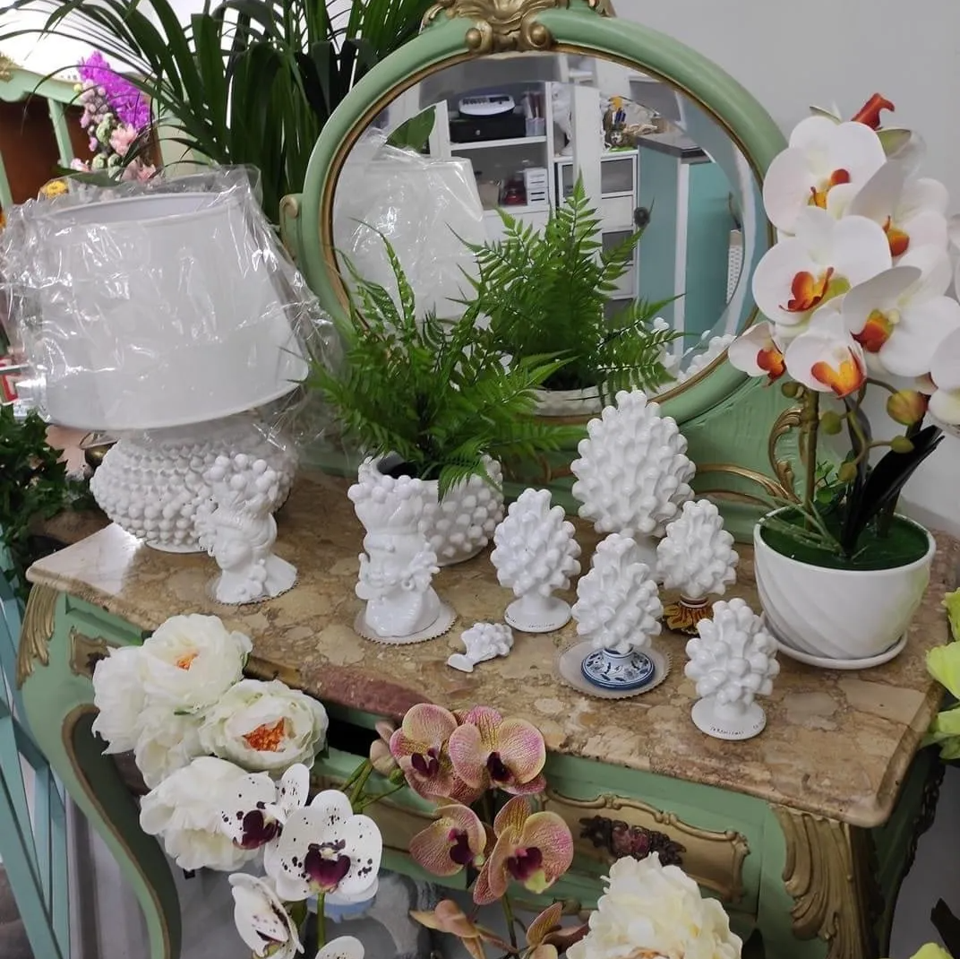 Scegli in negozio le originali ceramiche di Caltagirone abbellite con fiori per decorare casa o allestire eventi