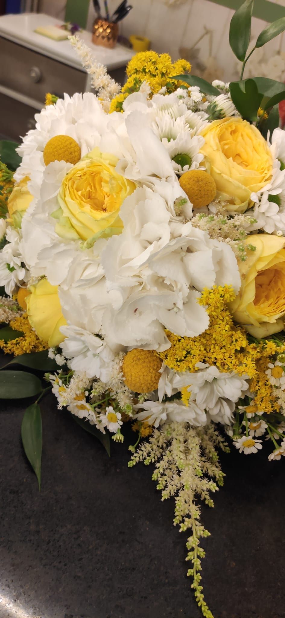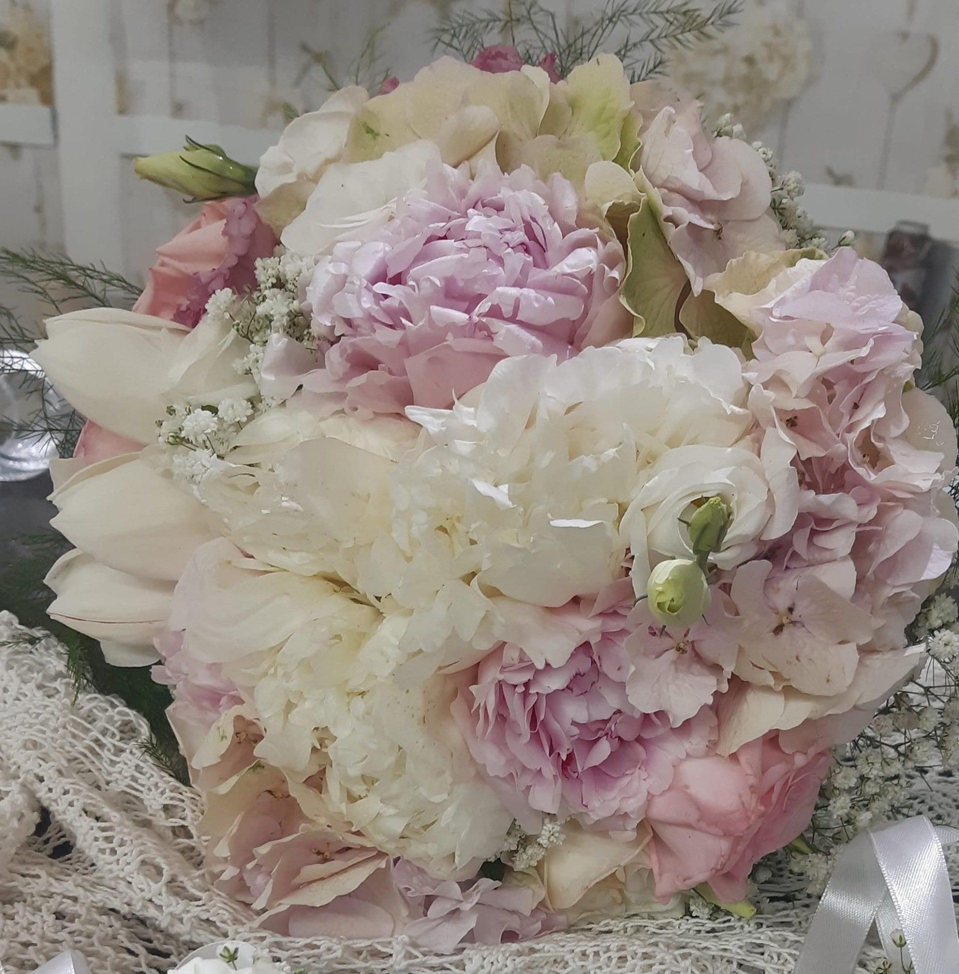 - decorazioni floreali per le foto a casa della sposa e dello sposo;