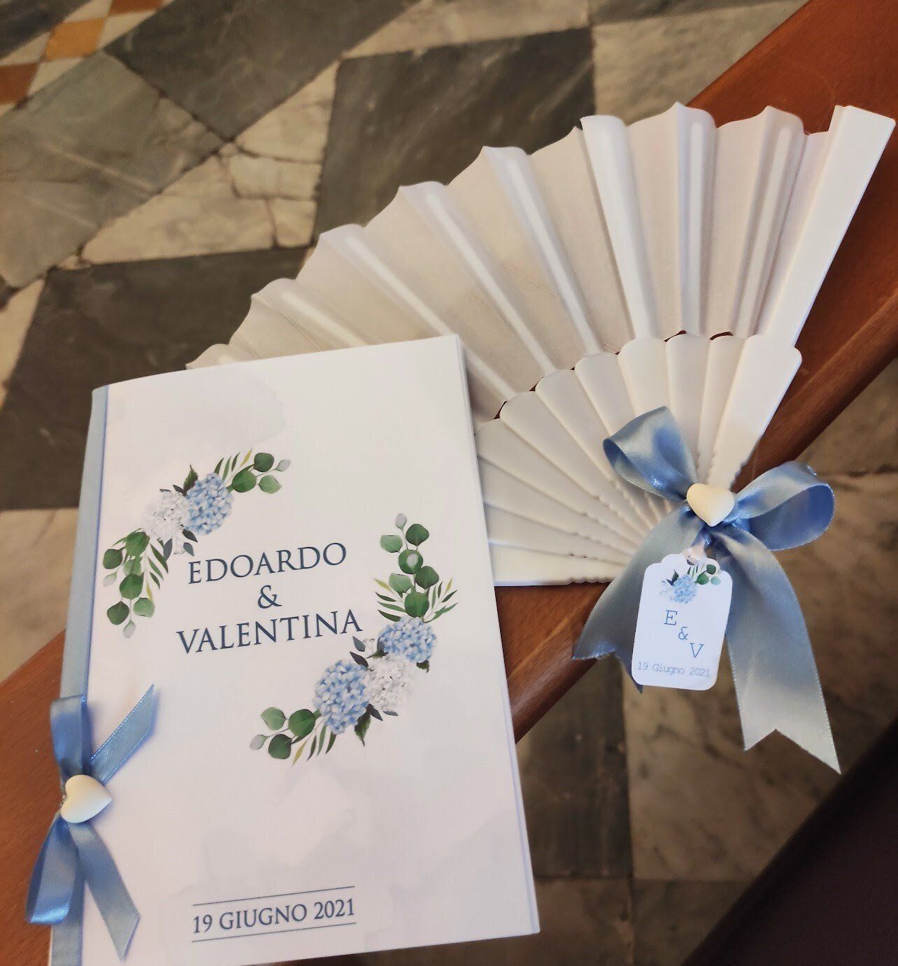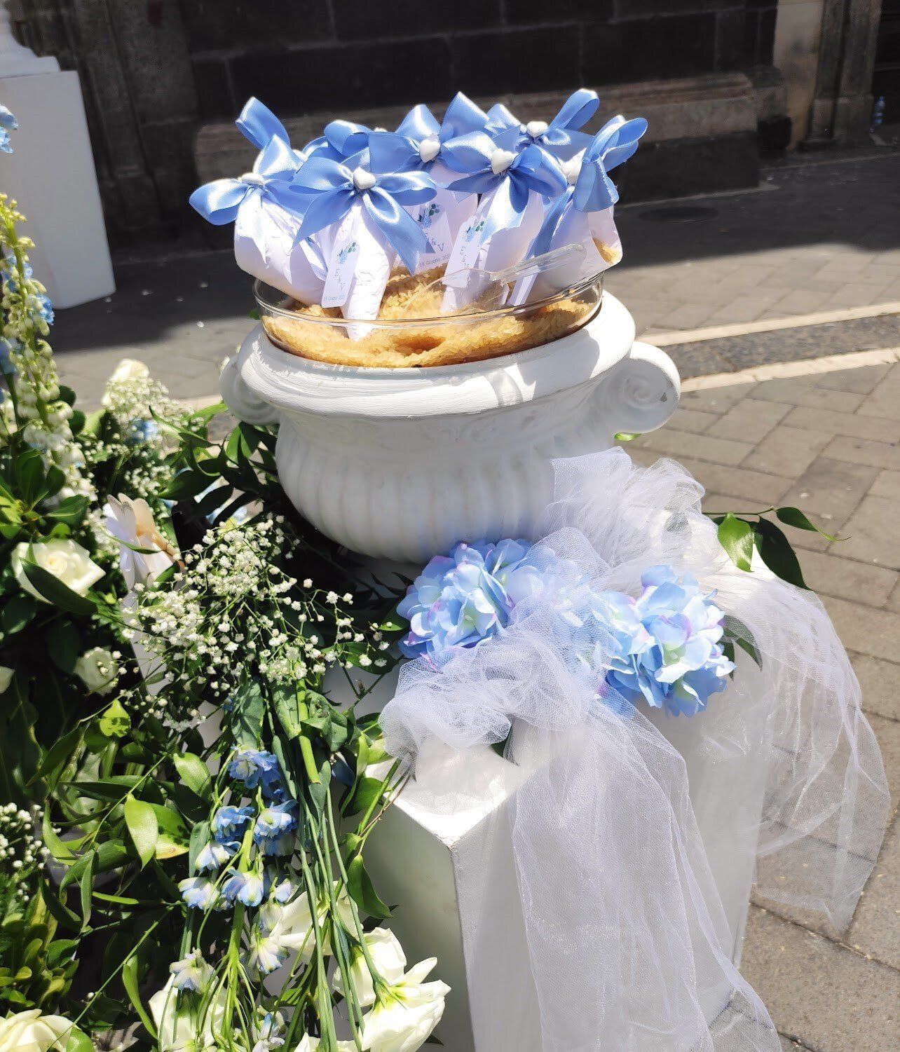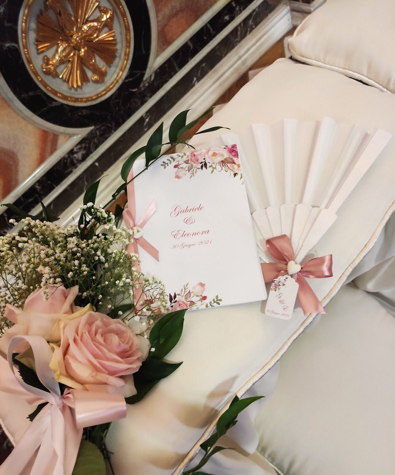 - riso, petali, libretti per la messa e ventagli